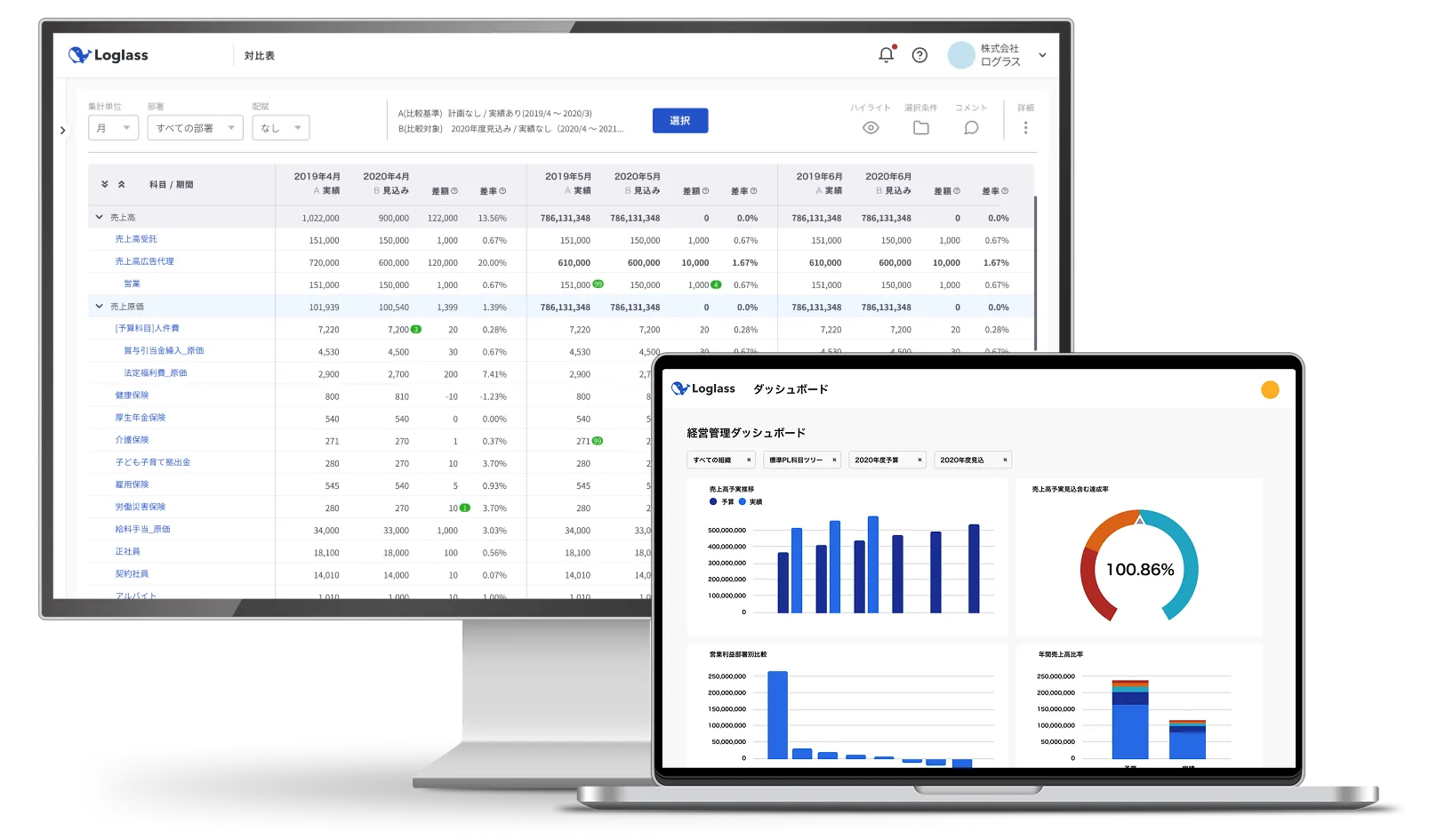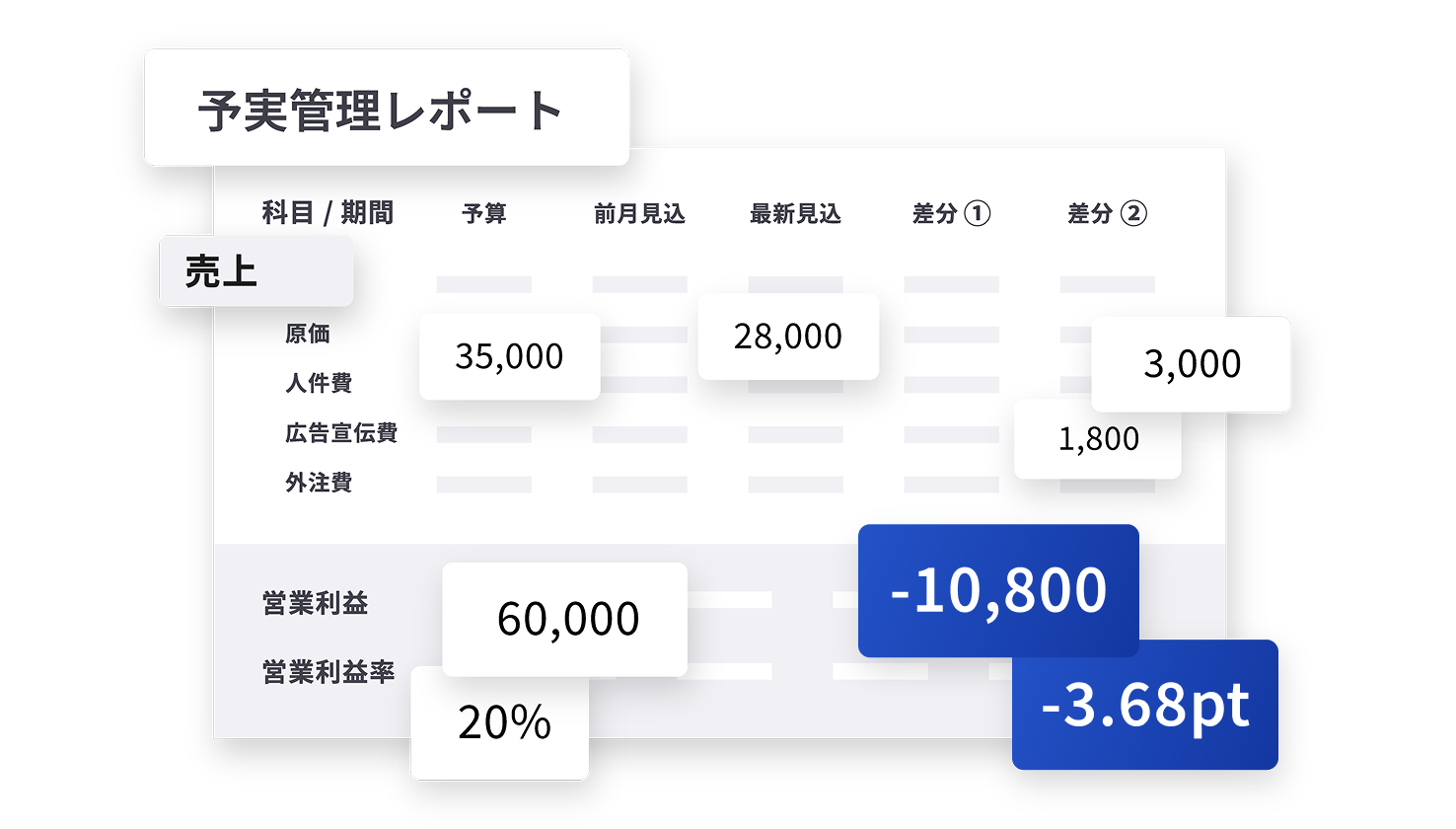 予算・実績・見込を自由に並べてワンクリックで比較。